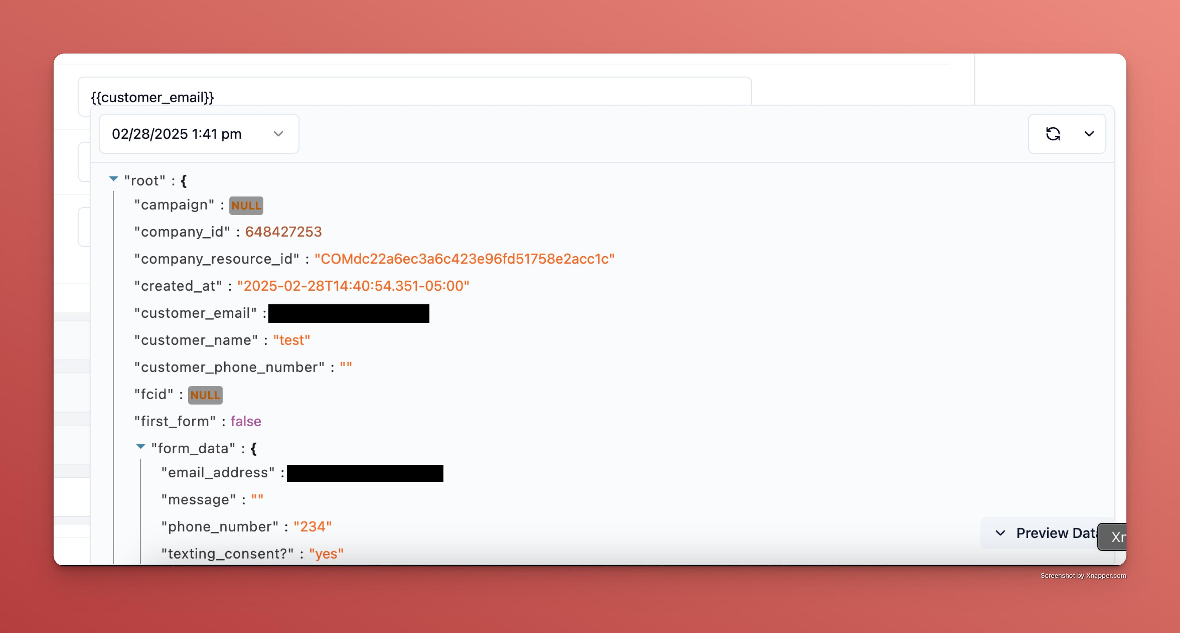 If you are customizing your CallRail integration, you can use the "Preview Data" panel to view the latest payloads sent from CallRail to Ours Privacy.
