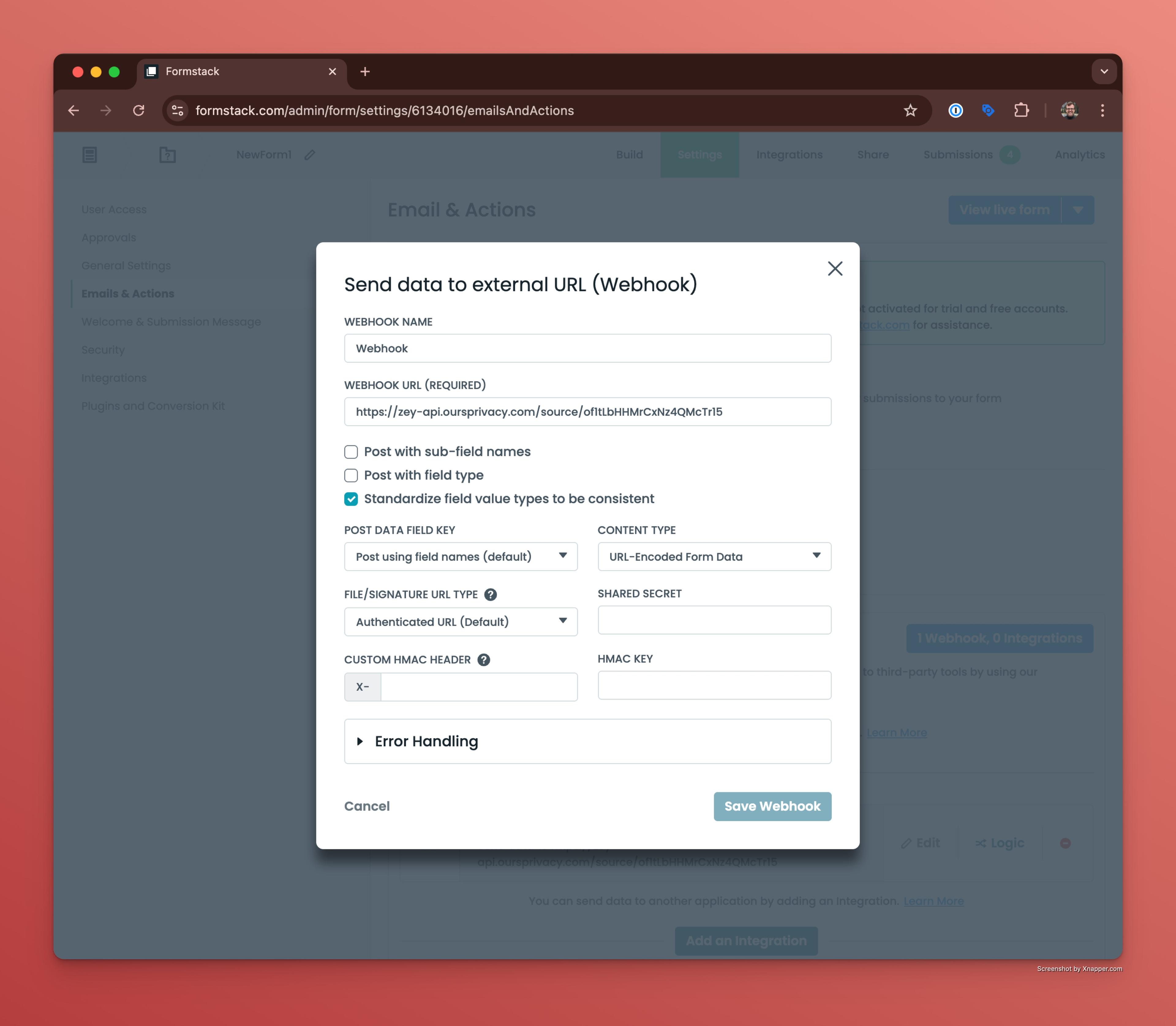 Formstack Webhook Integration