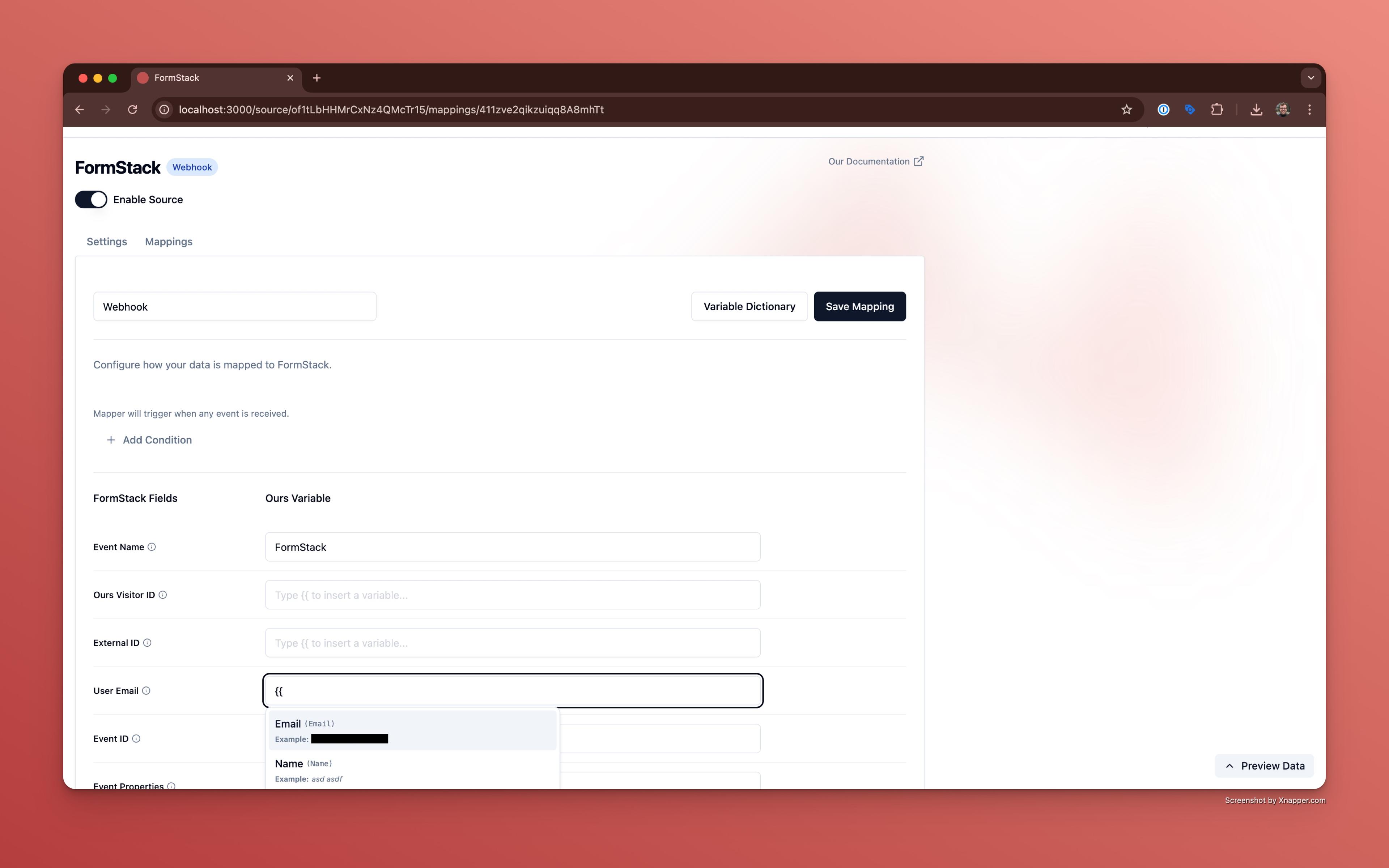 - Use the field mapping interface to map Formstack form fields to Ours attributes