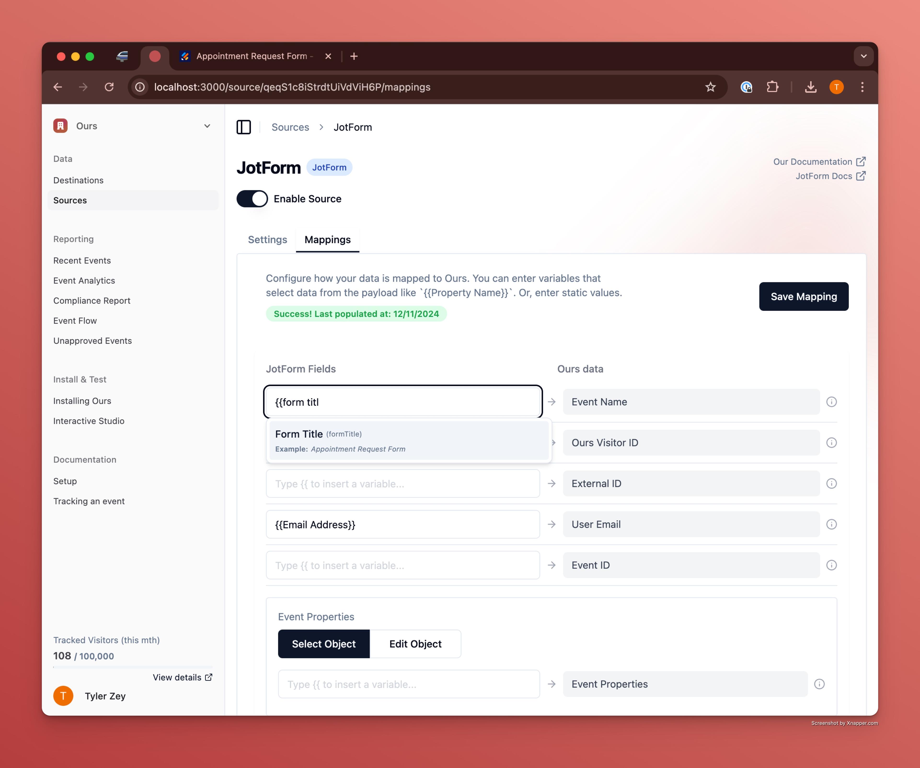 This guide will walk you through integrating Ours with your JotForm account. You’ll learn how to track form submissions and custom events seamlessly while ensuring HIPAA-compliant analytics for privacy-conscious applications.
