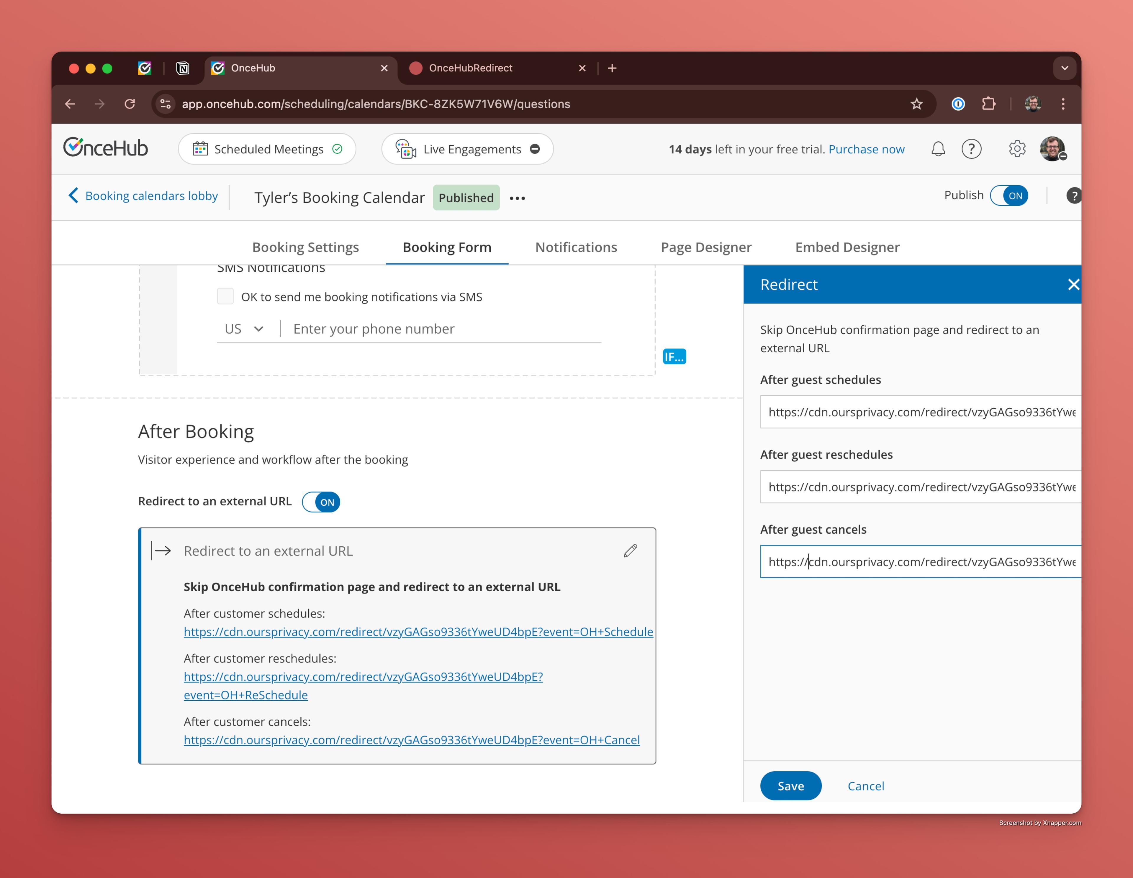 - Copy/paste the Redirect Url inside of OnceHub