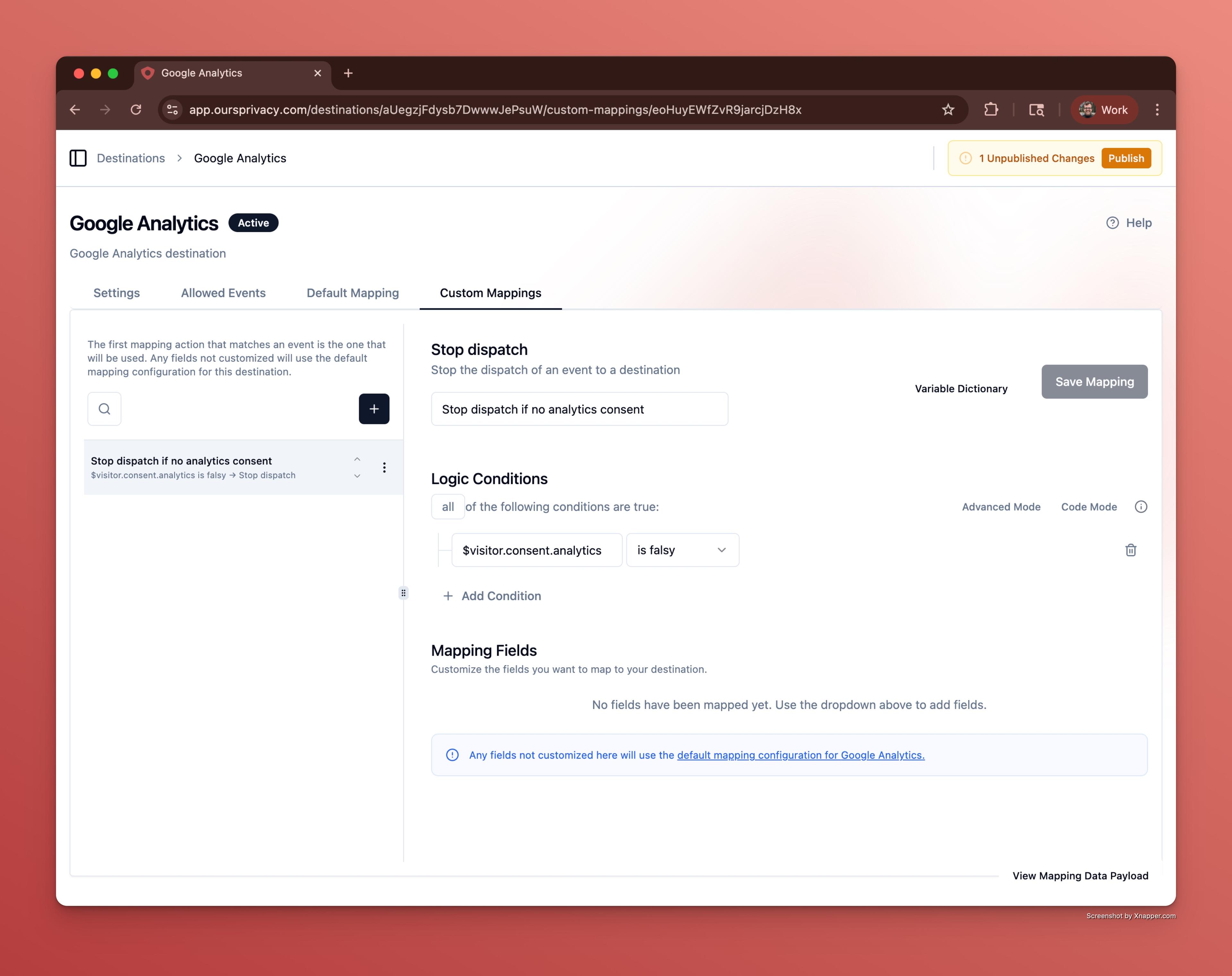 - Ours Privacy mappers conditionally route events to destinations based on consent