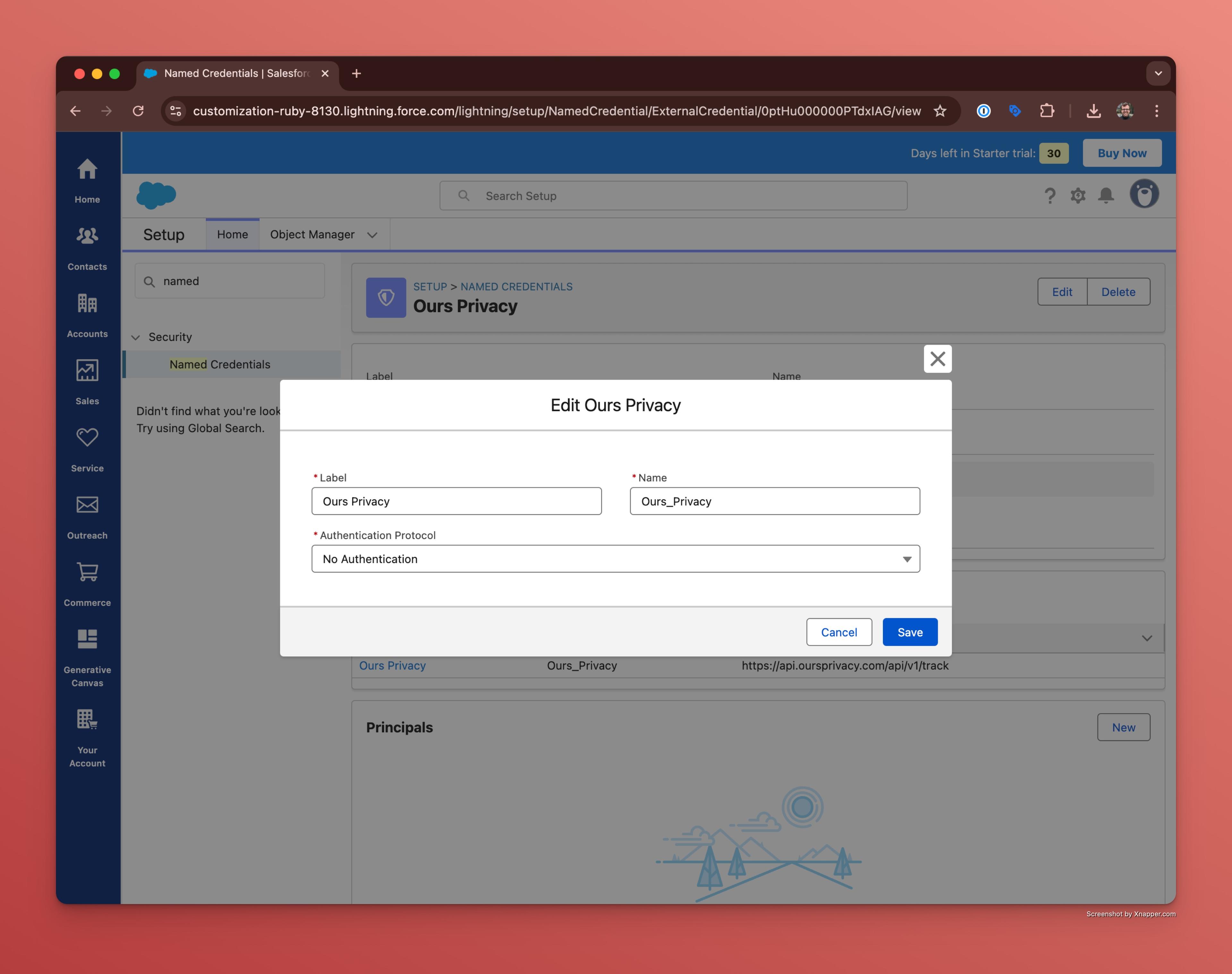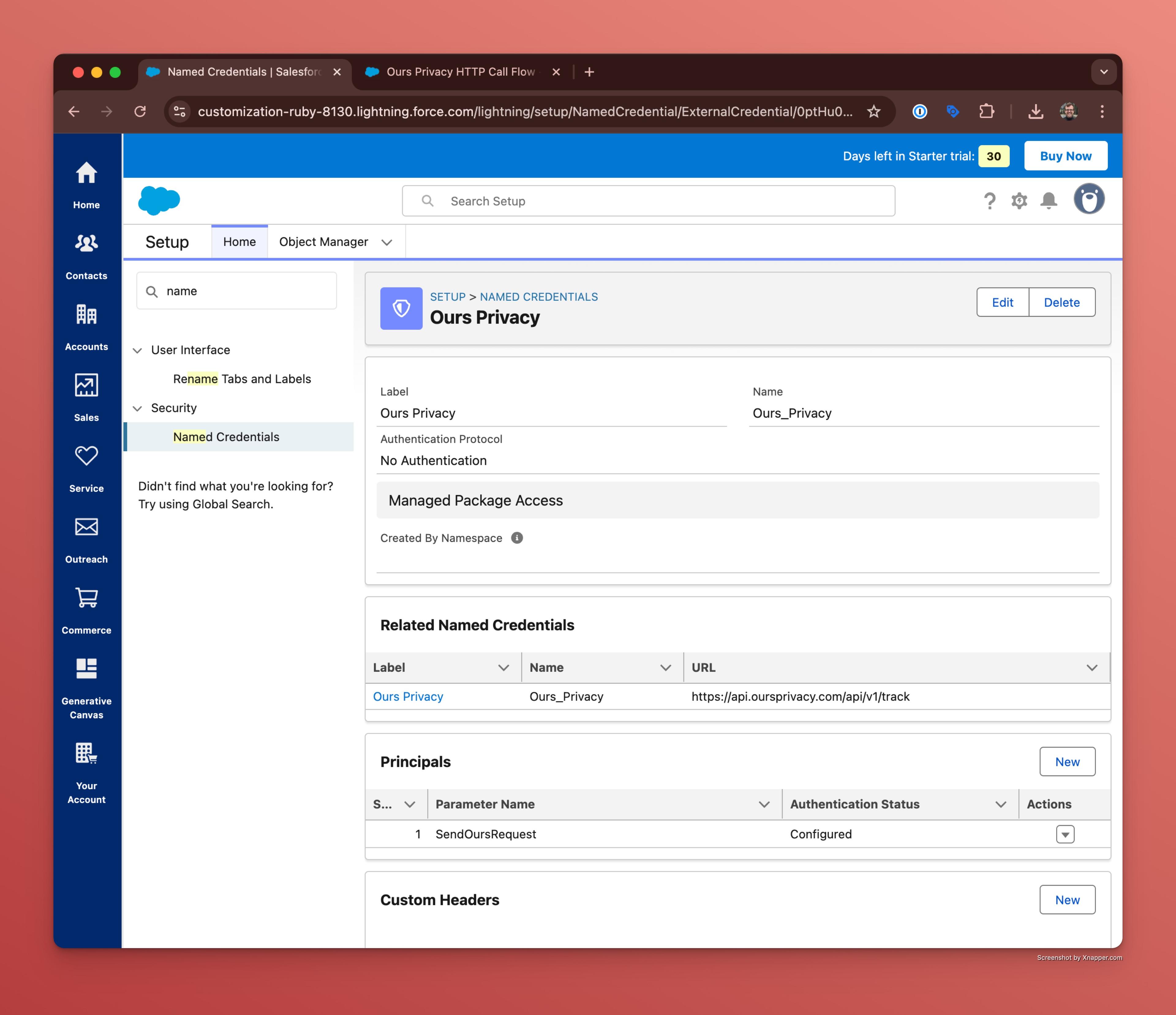 Below are detailed instructions on how to enable Ours Privacy as an HTTP Callout Source in SalesForce.