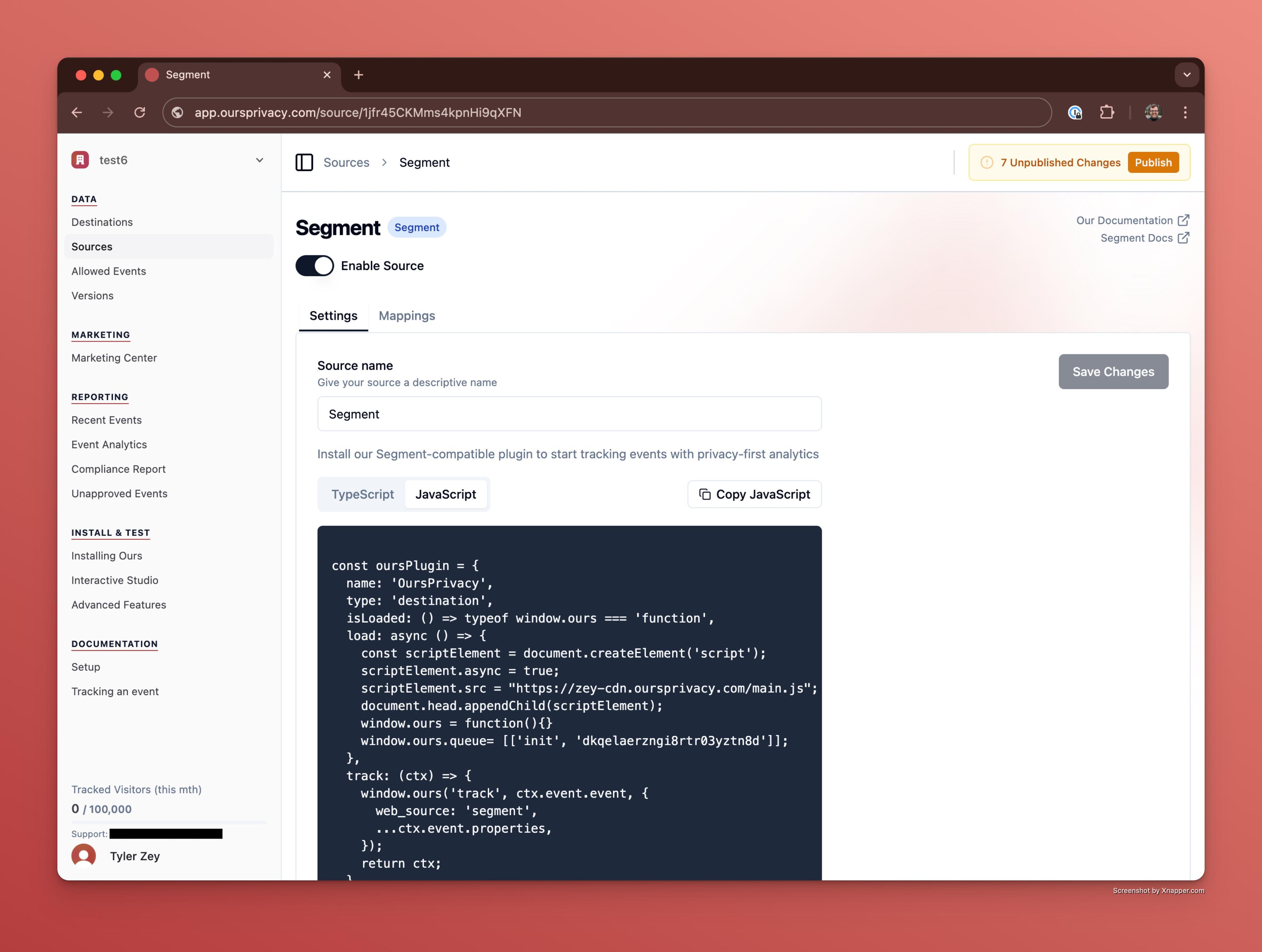 analytics.use(oursPlugin);Once configured, Ours will receive all events sent to Segment, and you can manage them through the Ours portal.
